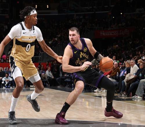 湖人客場挑戰(zhàn)奇才,湖人少了里夫斯,奇才是背靠背作戰(zhàn)(昨日擊敗雄鹿)且少了特雷楊、米德爾頓、巴格利、特雷約翰遜、惠特莫爾,就紙面實力而言他們遠(yuǎn)不如湖人,湖人優(yōu)勢巨大,很快取得大比分領(lǐng)先,一度領(lǐng)先38分,最終湖人142-111大勝奇才。東契奇21中13(三分13中6)砍下37分11板13助3斷,艾頓14中12得到28分13板3助3帽,詹姆斯16中8(三分3中2)得到20分3板6助2斷,奇才方面薩爾14中8得到16分6板5助2斷、喬治12中5得到15分3板6助2帽。