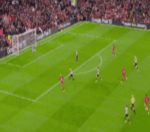 第43分鐘,埃基蒂克左路長驅直入,殺入禁區后低射遠角上演梅開二度,利物浦2-1反超比分。