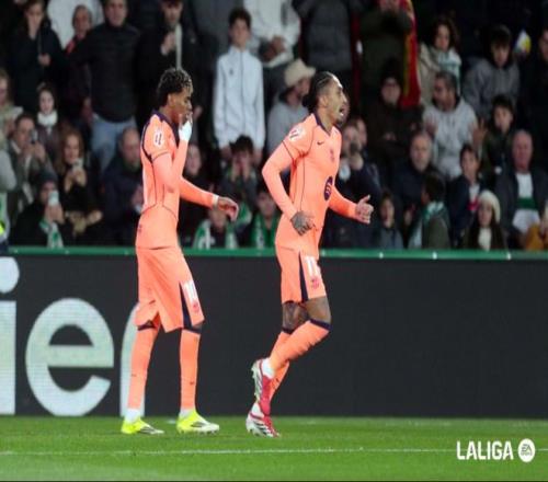 開場僅僅6分鐘,接到奧爾莫的直塞,亞馬爾瀟灑晃過門將,將球打進。