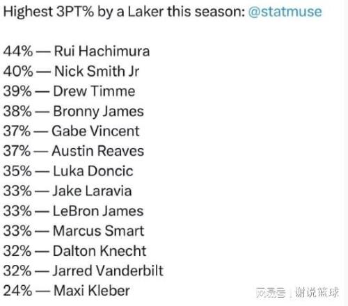 湖人三分是大難題,僅兩將命中率超四成,東契奇第七詹姆斯倒數(shù)