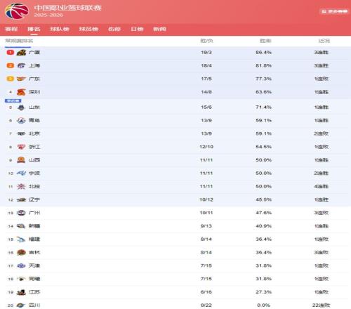 CBA打到現(xiàn)在,排名前3的隊伍分別是廣廈19勝3負,上海18勝4負,廣東17勝5負,上海和廣東之間的差距只有1場,咬的很死,誰都有登上第1的可能!