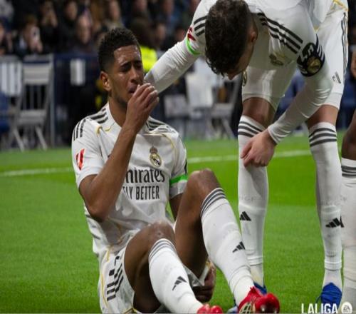 第9分鐘,皇馬遇到了重大打擊,貝林厄姆無球跑動的過程中,捂住左大腿后側的肌肉,疑似肌肉拉傷,痛苦倒地。