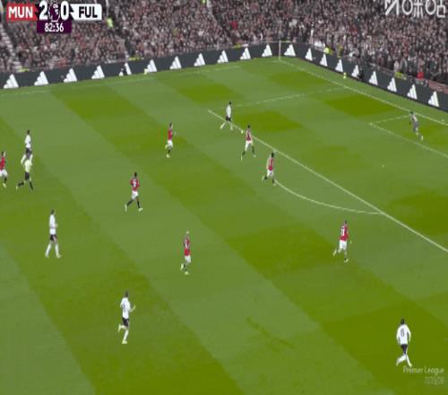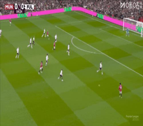 第19分鐘,B費助攻,卡塞米羅后點泰山壓頂頭槌破門,曼聯(lián)1比0富勒姆!