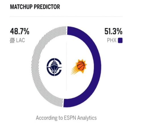 反觀太陽,近期迎來3連勝,賽前以30勝19負的戰績排在西部第7,雖然球隊交易杜蘭特,買斷了比爾,得到的杰倫格林長期缺陣,但是狄龍的加盟徹底激活球隊的防守體系,加上阿倫、奧尼爾都打出3D屬性,太陽反而成為西部的黑馬球隊。此役傷病方面,布克、格林繼續缺陣,快船這邊瓊斯、華盛頓因傷缺陣,哈登也因為個人原因缺席比賽,桑德斯進入首發替代哈登。ESPN認為太陽近期狀態火熱,快船缺少哈登后贏球概率只剩48.7%。