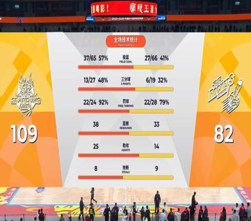 末節決戰,山東男籃繼續火力全開,上來轟出一波18-0,把領先優勢擴大到了30+。最終,山東男籃主場以109-82大勝寧波隊,豪取8連勝,排名繼續上升。